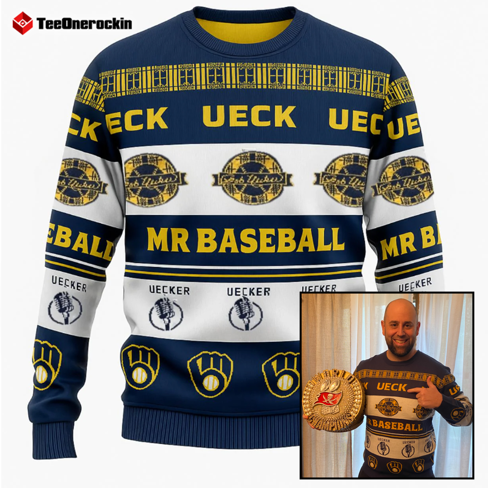 Bob Uecker Honor Brewers Legend Playoffs Ugly Holiday Sweater