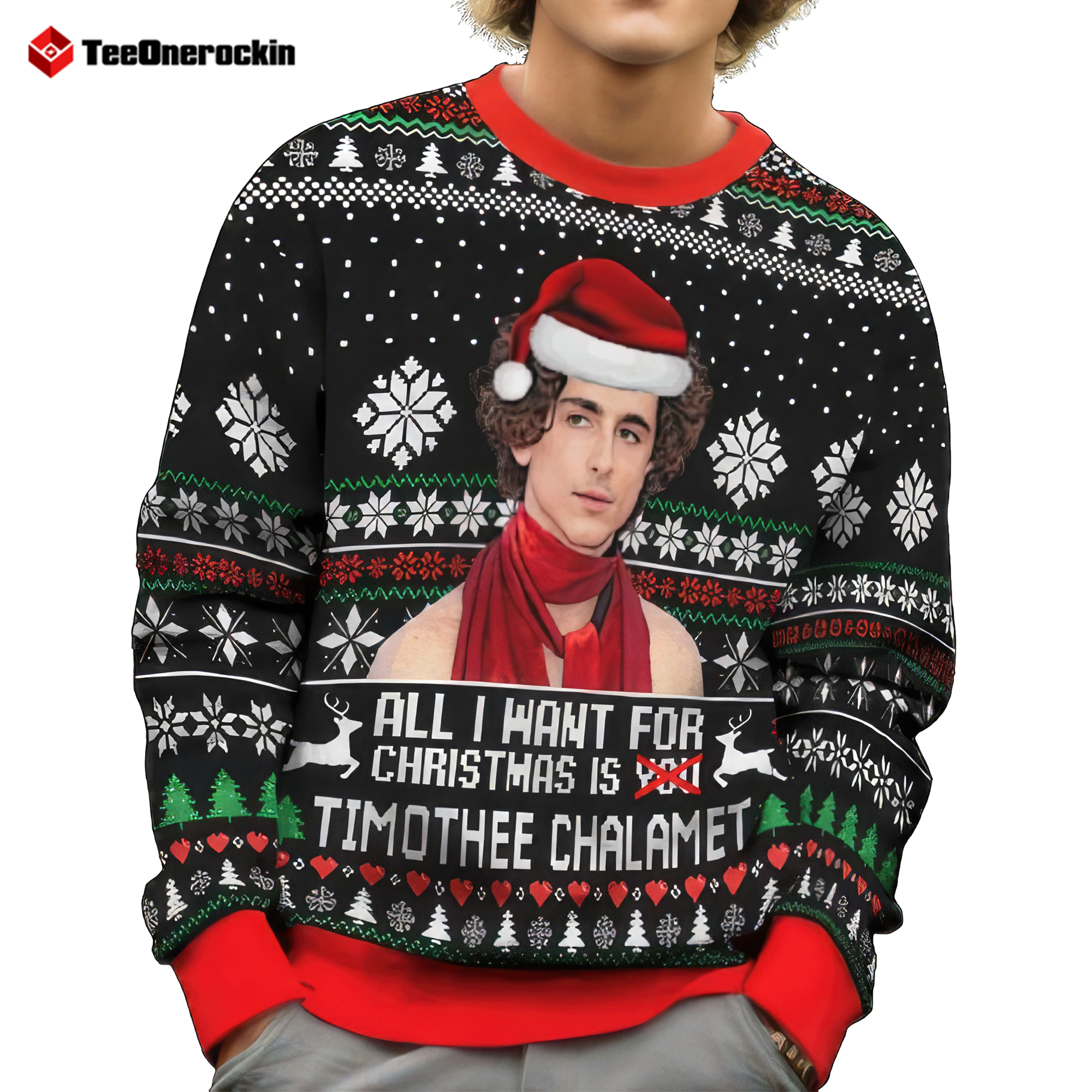 All I Want For Christmas Is Timothee Chalamet Ugly Holiday Sweater