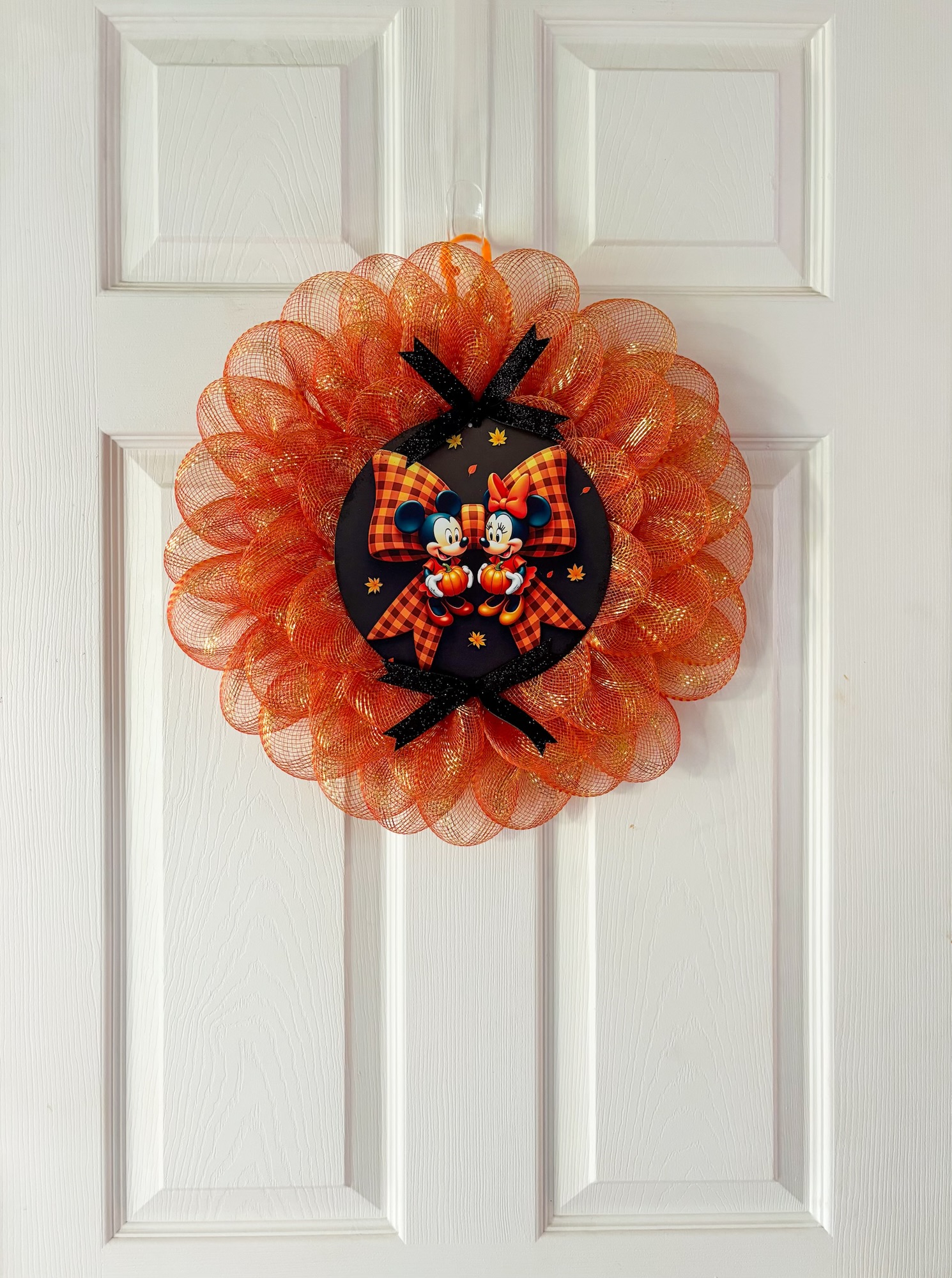 16″ Mickey and Minnie Orange Petal Halloween Wreath