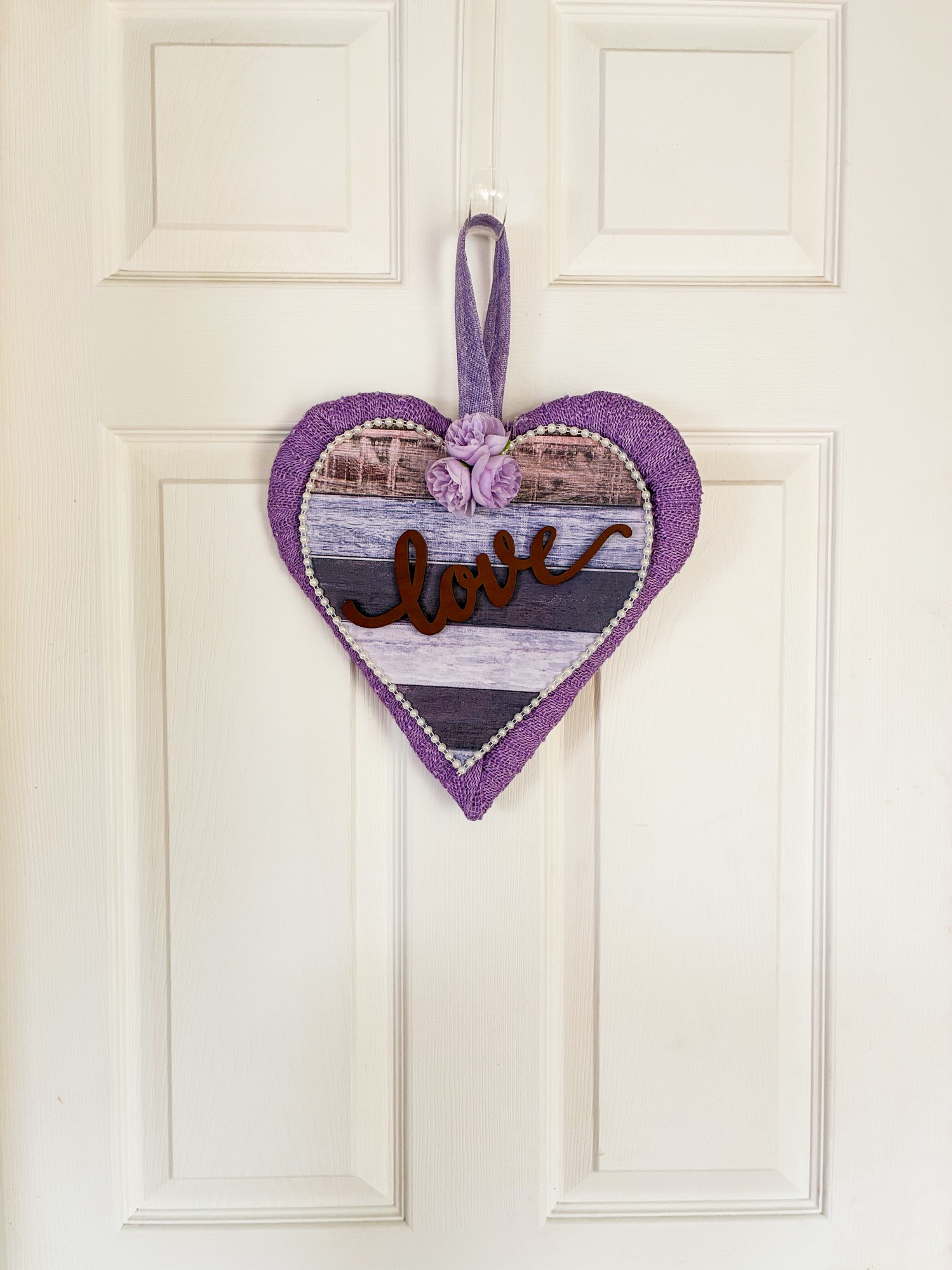 12″ Purple Heart with Love Center and Pearl Outline