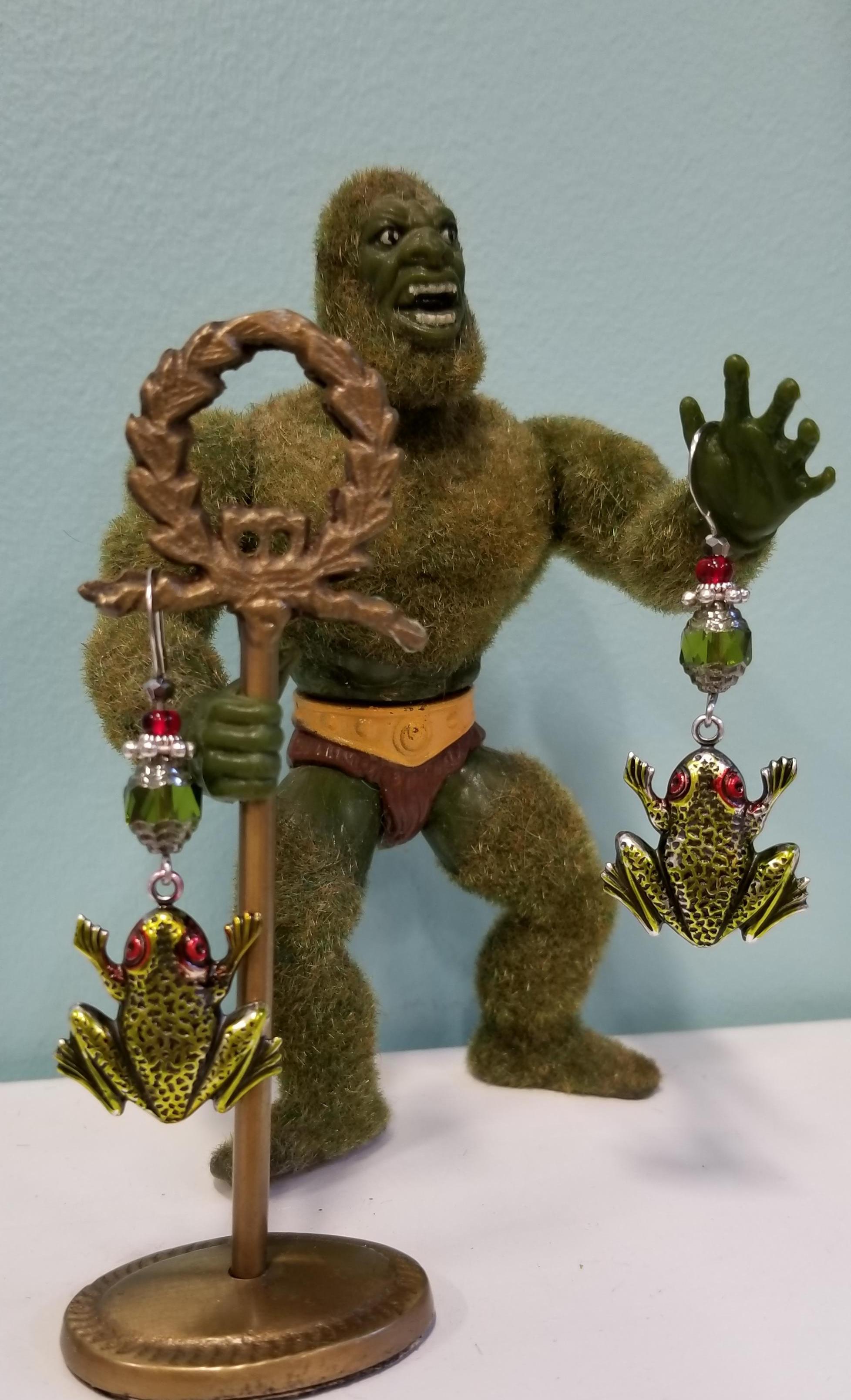 Green Frog with Red Eyes Earrings