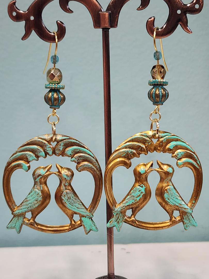 Verdigris Brass Love Birds Earrings