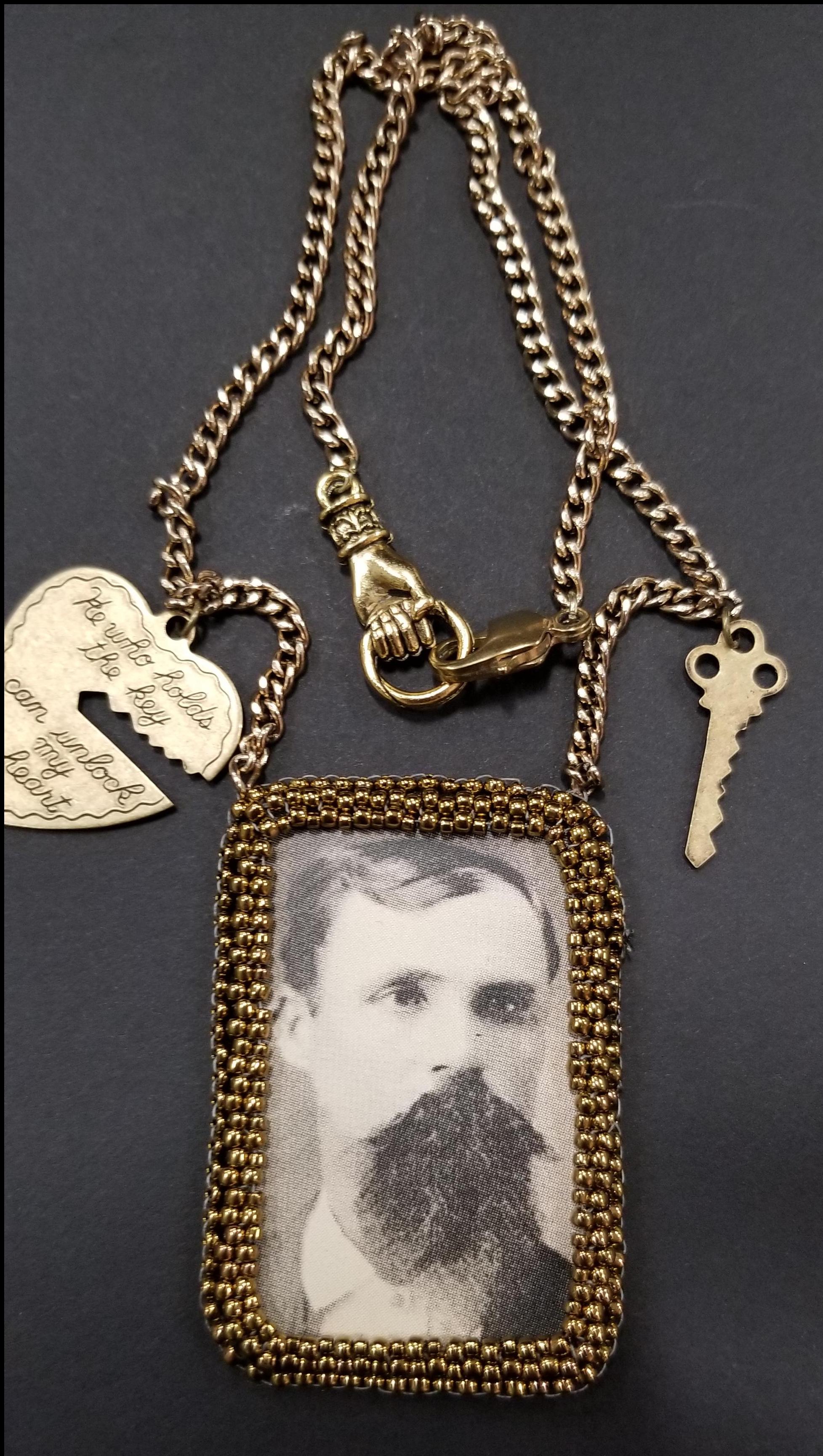 Bearded Man with Heart and Key Necklace