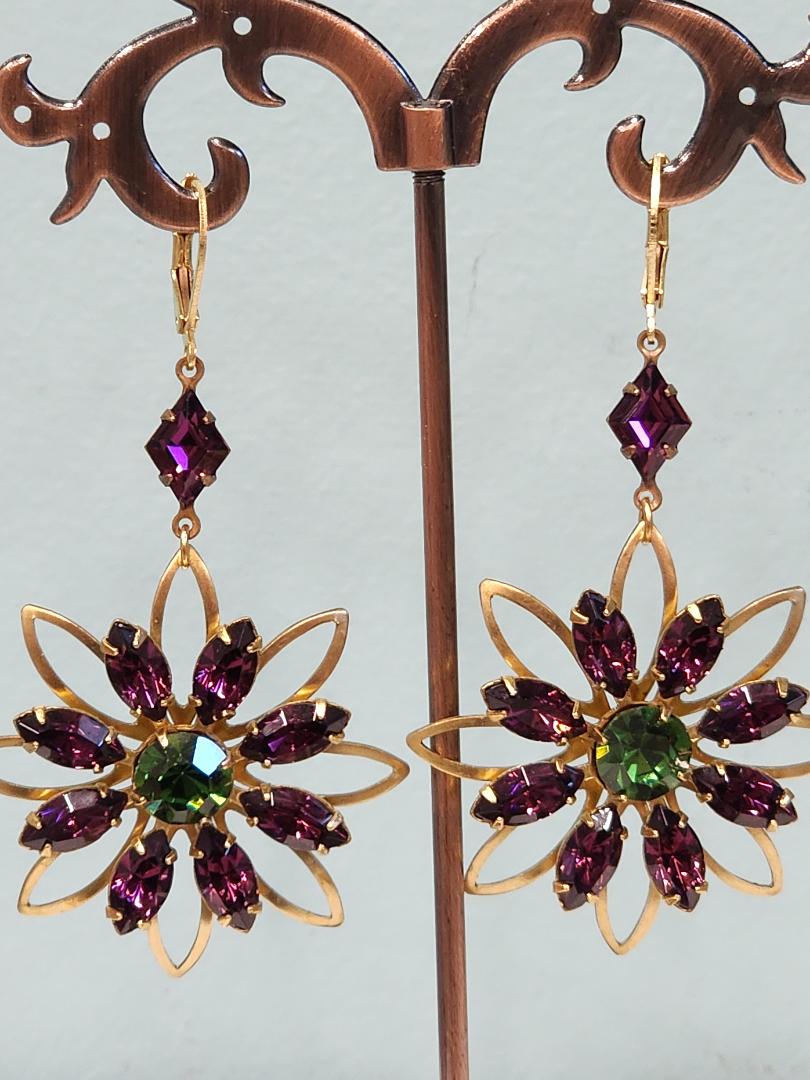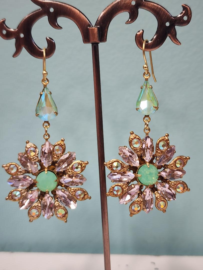 Large Rhinestone Flower and Hot Pink Drop Earrings