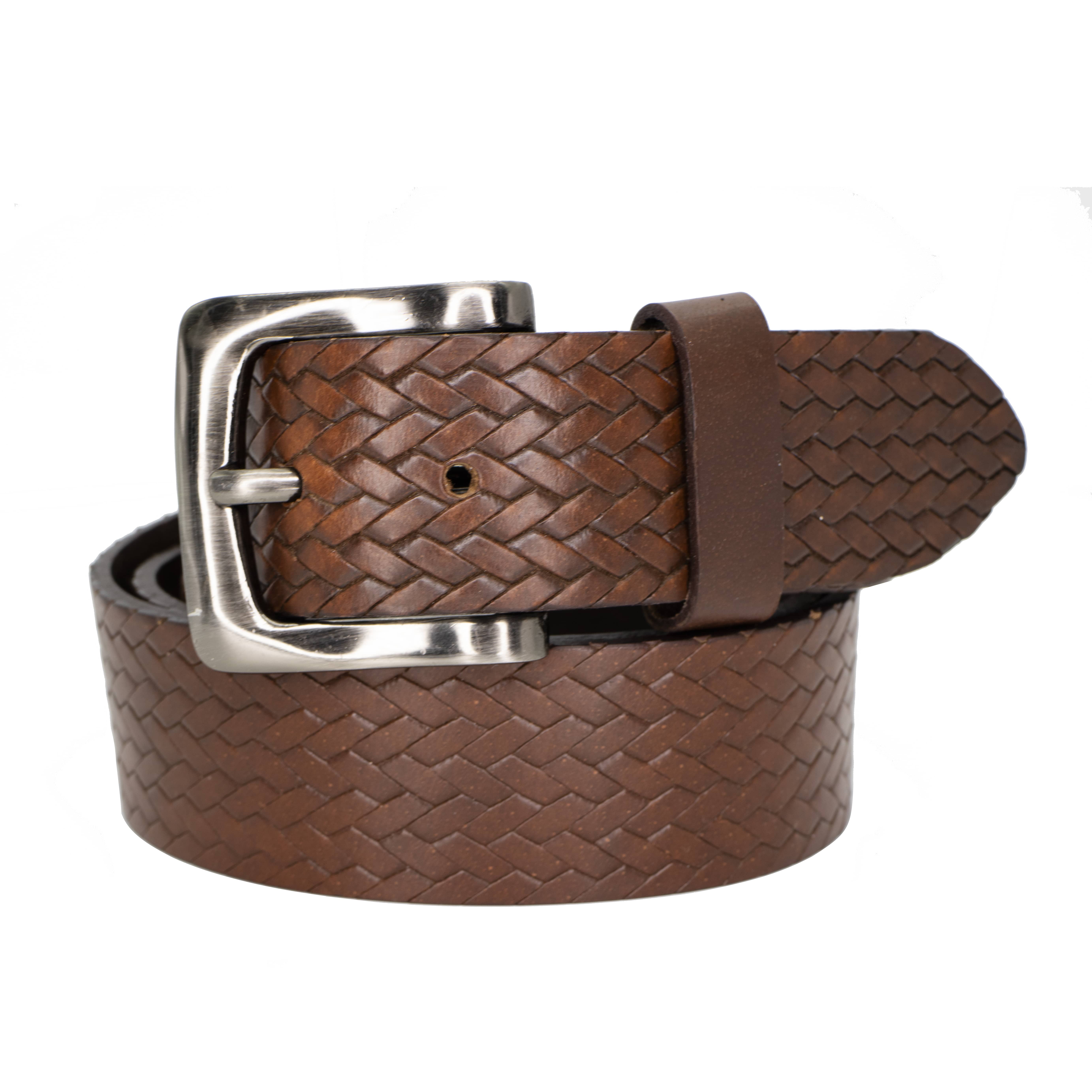 39mm Full Grain Viper Scale Embossed Brown Leather Belt - 34 inches