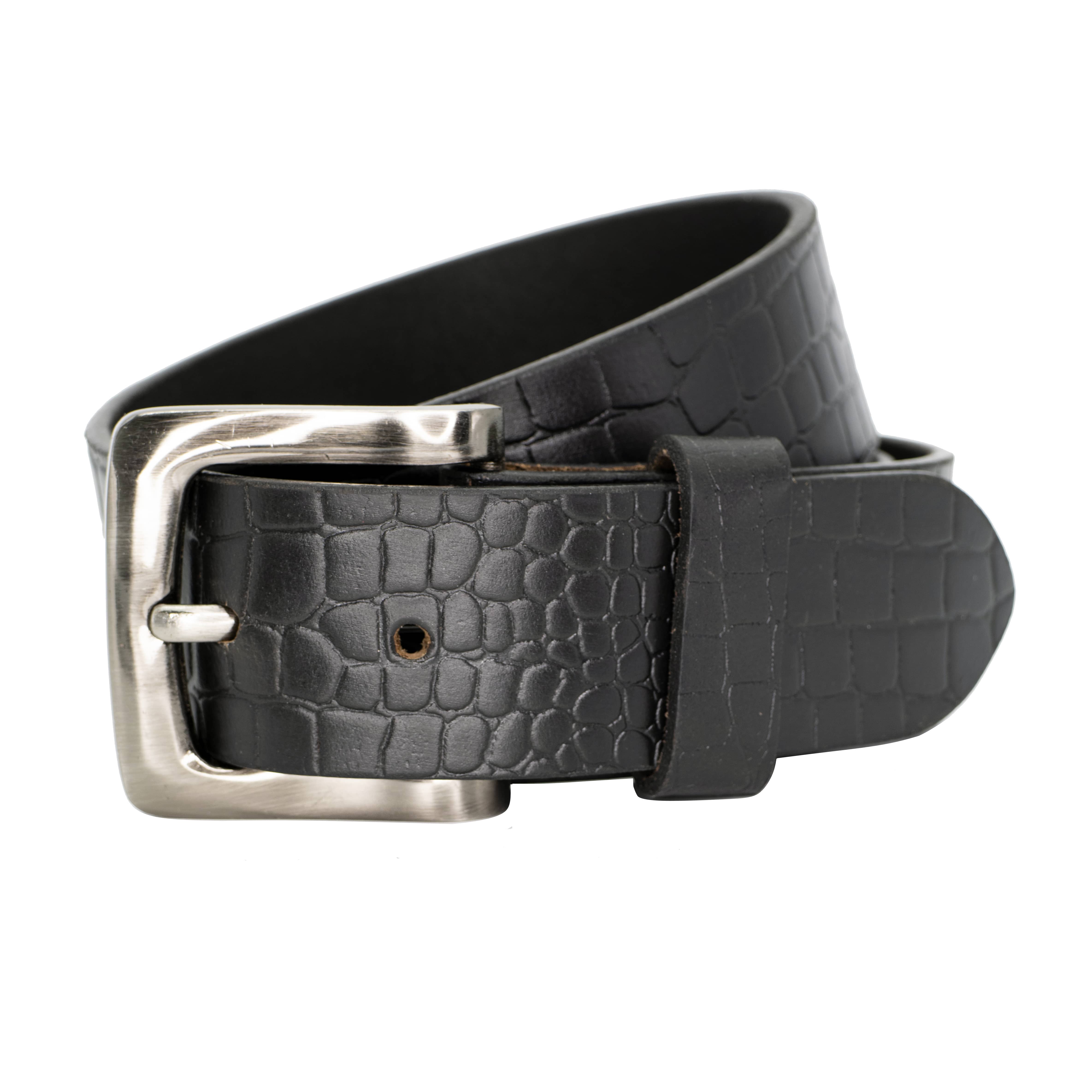39mm Full Grain Cowhide Crocodile Scales Embossed Black Leather Belt