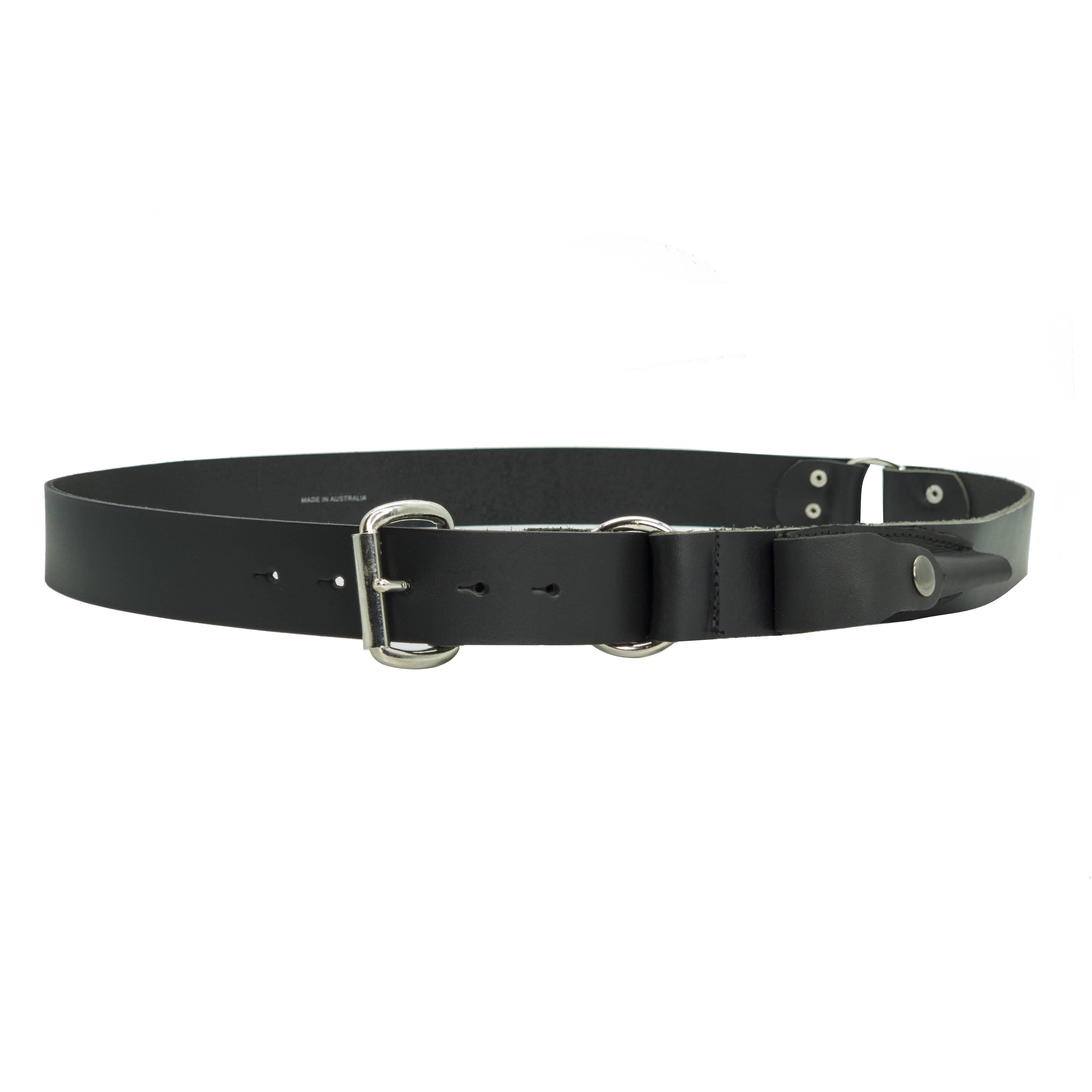 38mm Australian Made Stockman’s Hobble Style Black Leather Belt with Knife Pocket