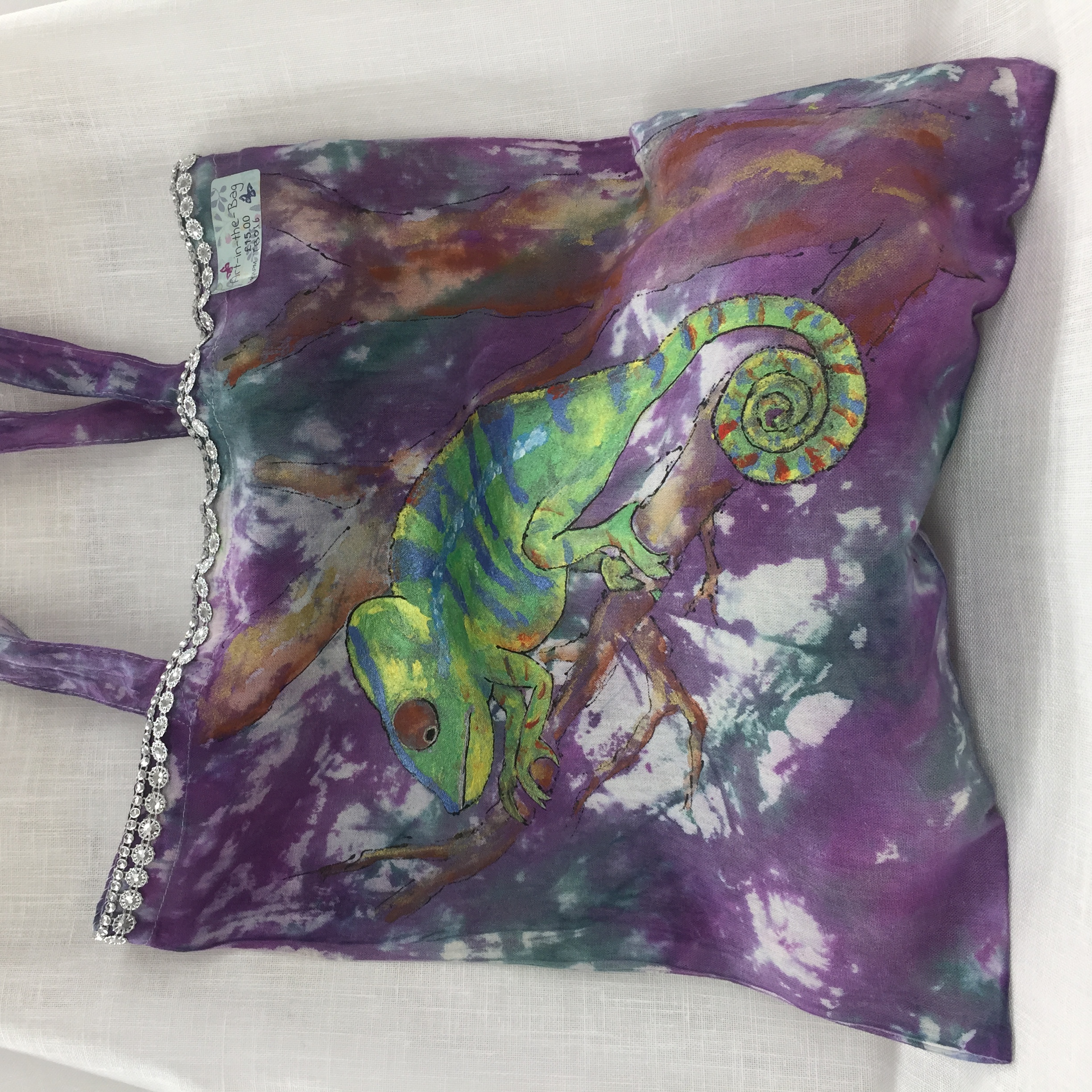 Hand-painted and tie-dyed Chameleon Cotton Tote Bag