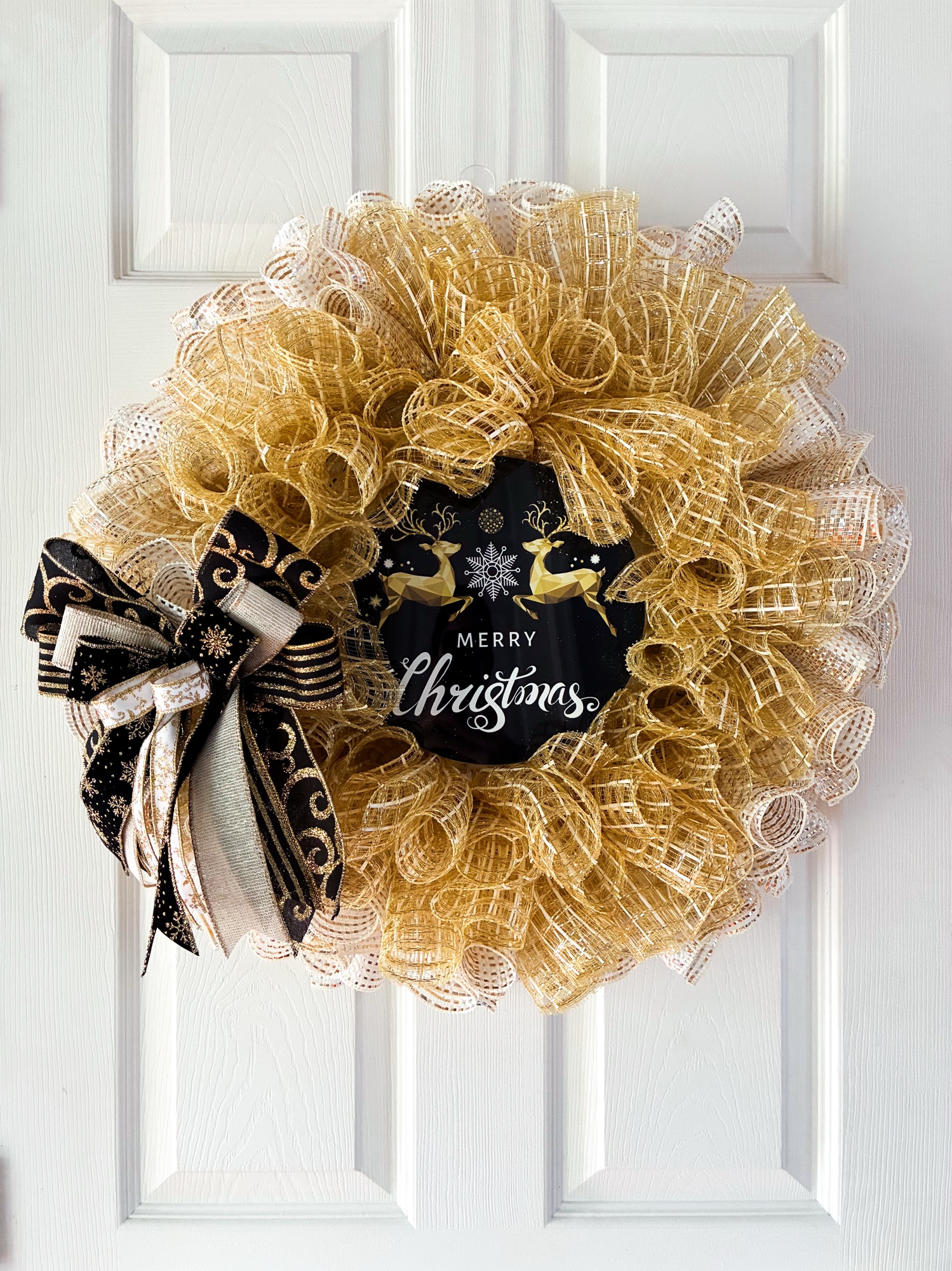 22” Gold & White Kruffle w Black and Gold Reindeer