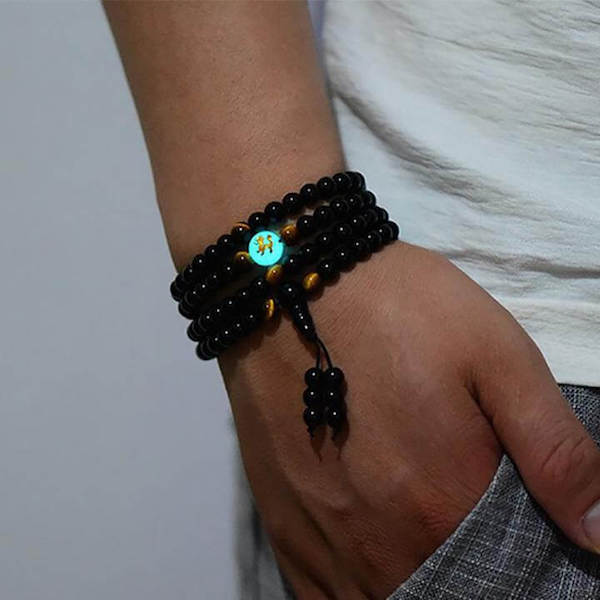 108 Black Onyx Mala Beads Luminous Dragon Bracelet – 8mm / 6mm