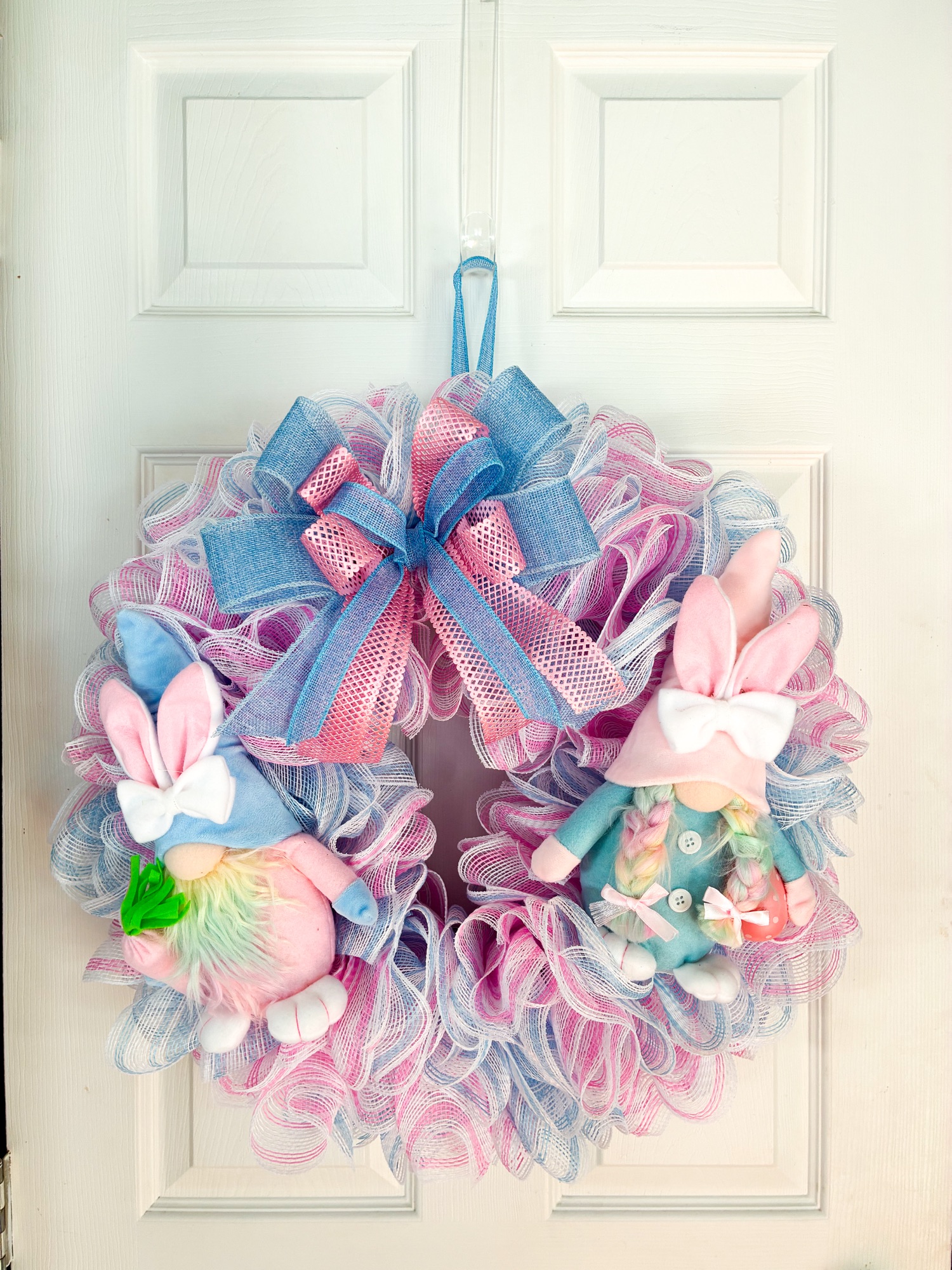 23″ Pastel Pink & Blue Stripe Double Ruffle Easter Gnome Duo Wreath