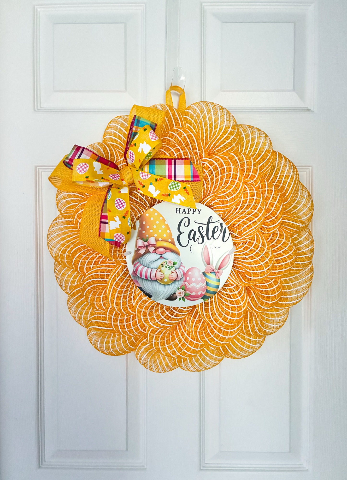 22″ Happy Easter Gnome Tangerine Stripe Large Lollipop Petal Wreath