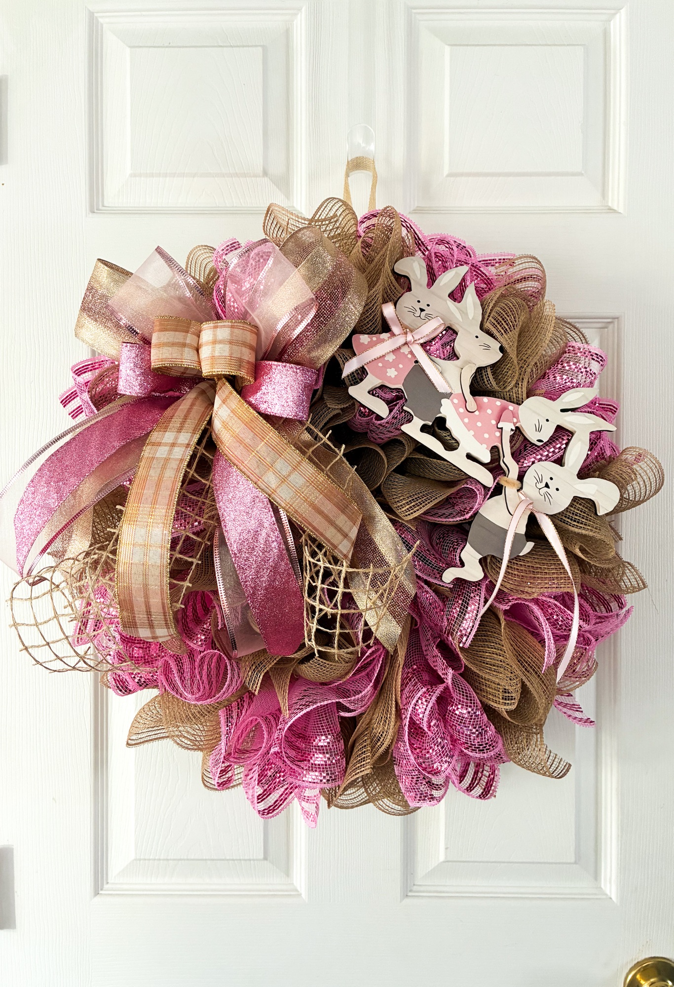 20″ Easter Bunny Quad Pink & Tan Pancake Wreath