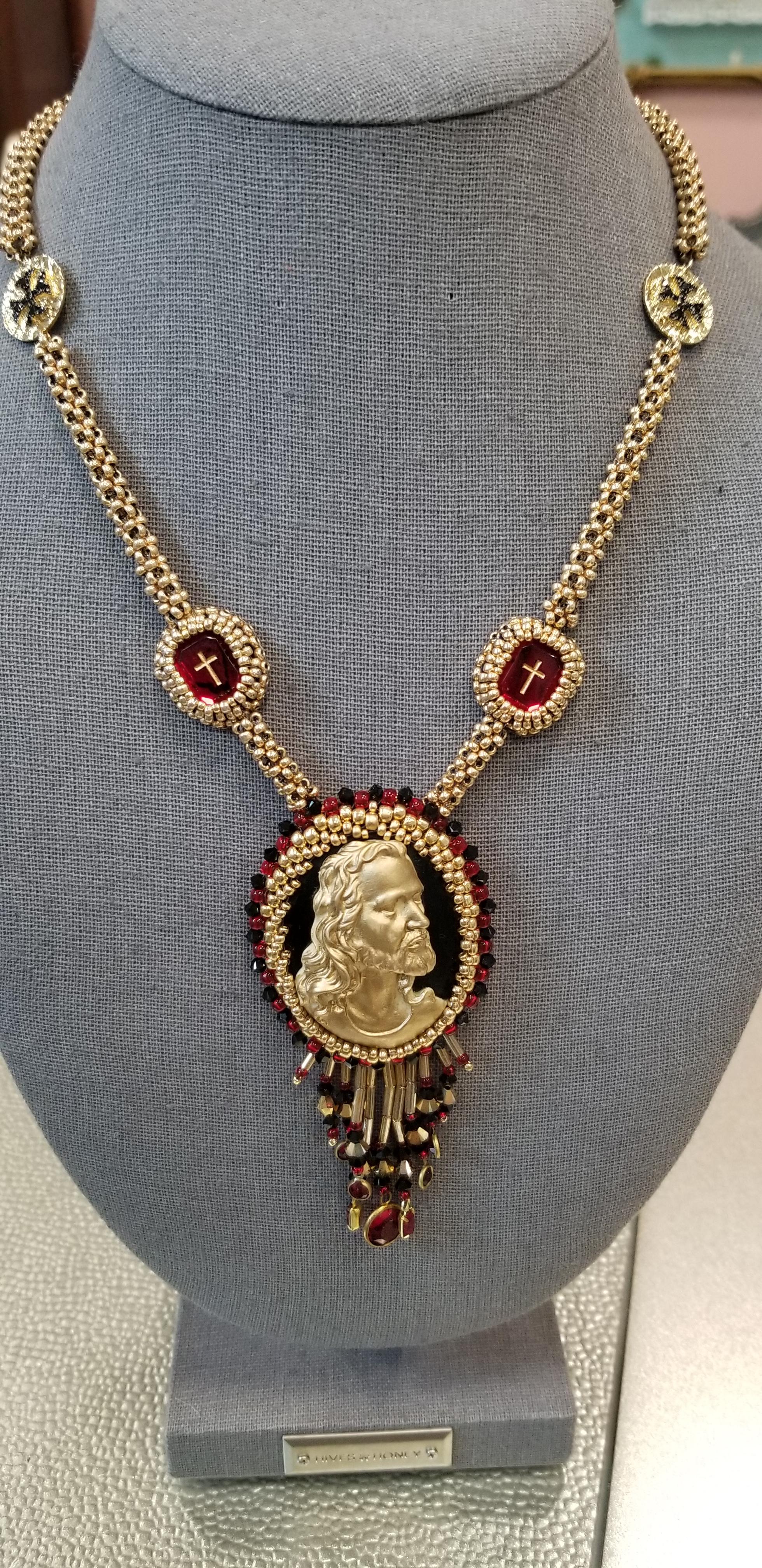 This handmade Indian Corn pendant was literally created kernal by kernal using polymer clay. It was truly an ‘amaizing’ accomplishment because of the number of hours that it took to complete this project. The corn itself is aproximately 1 and 1/2 inches long and 1/2 of an inch wide at the widest section. The corn is topped with real, organic corn stalk fibers, and finished with a 30 inch necklace featuring small, shiny, brownish-bronze, fire polished faceted beads with gold toned loops. Wear this unique, one-of-a-kind necklace at your Thanksgiving dinner or give it as a gift to an amazing friend.